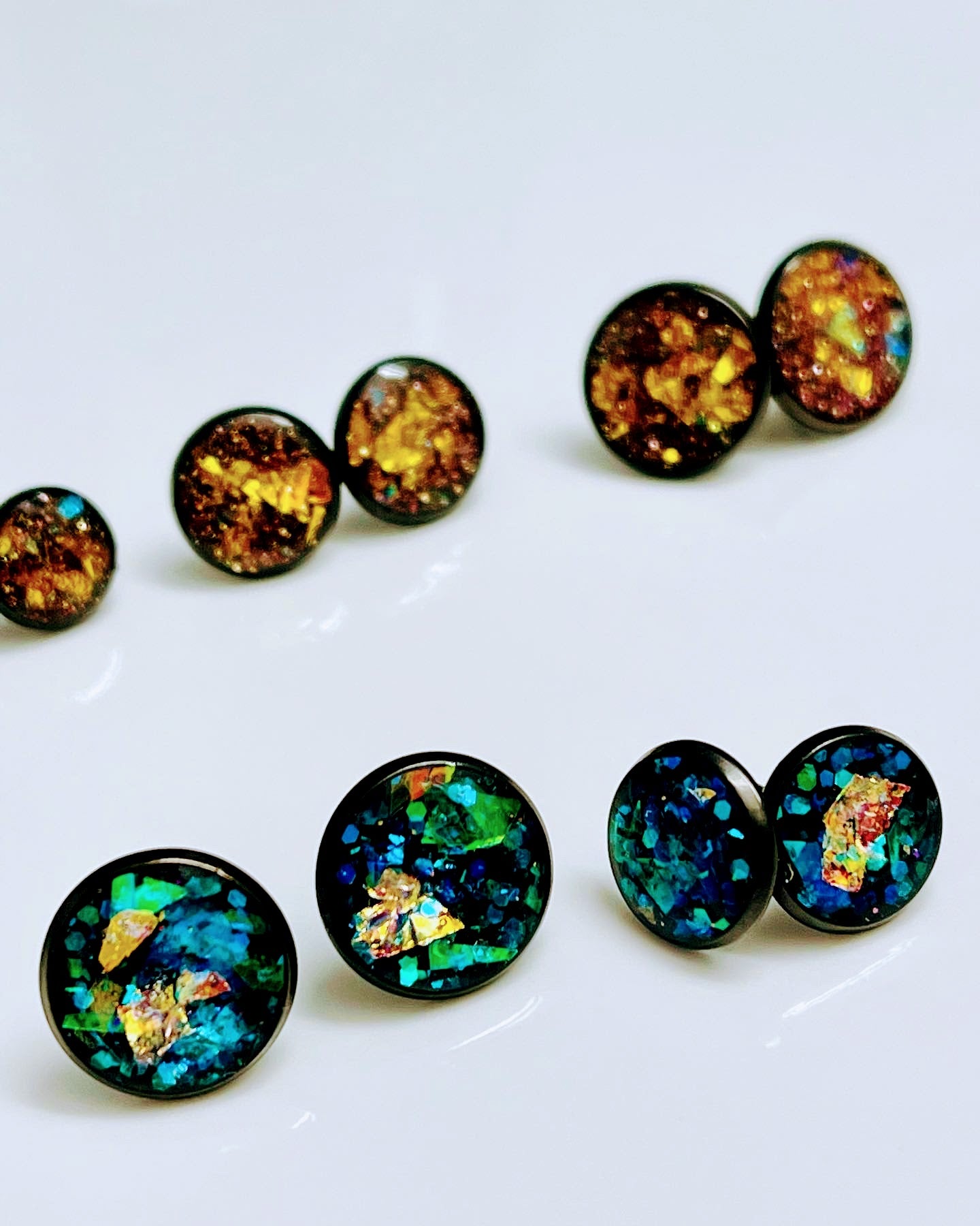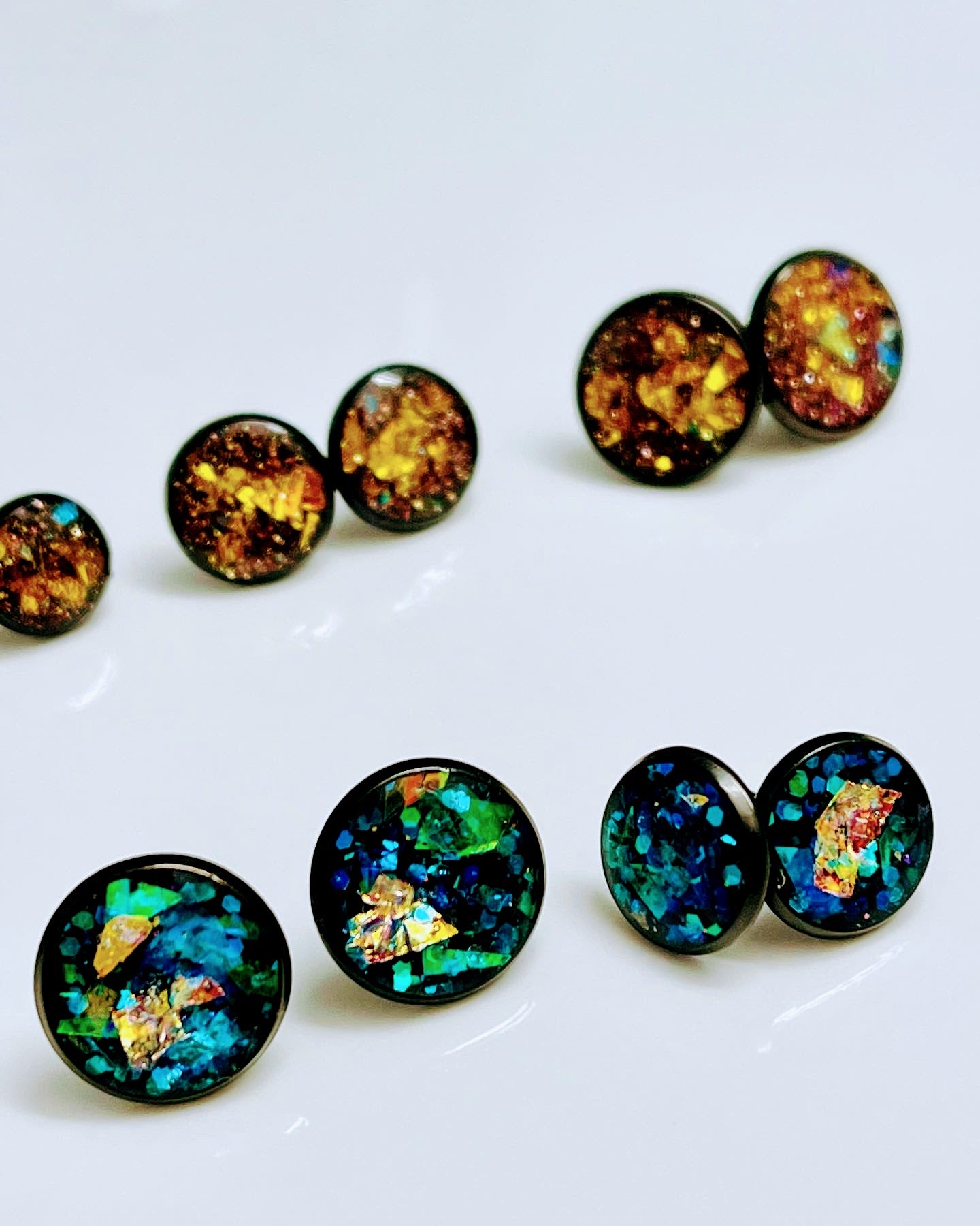 Sparkle Studs are created with holographic glitter & foil that sparkle in any light!