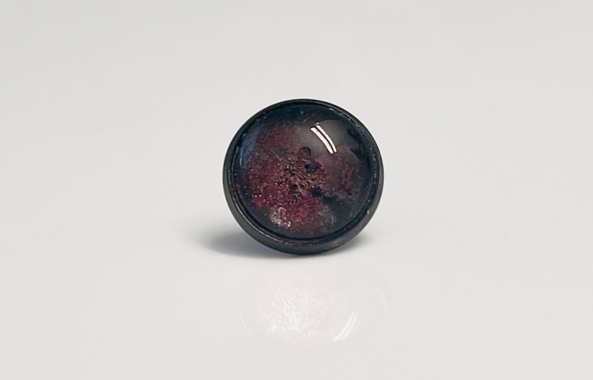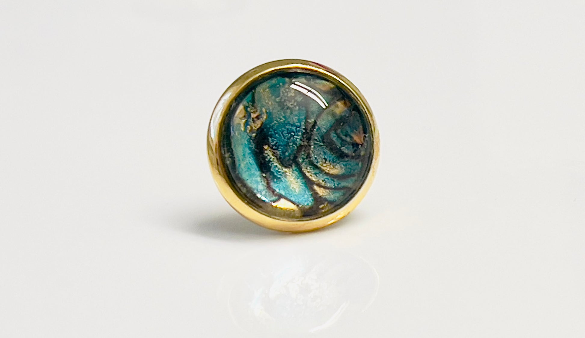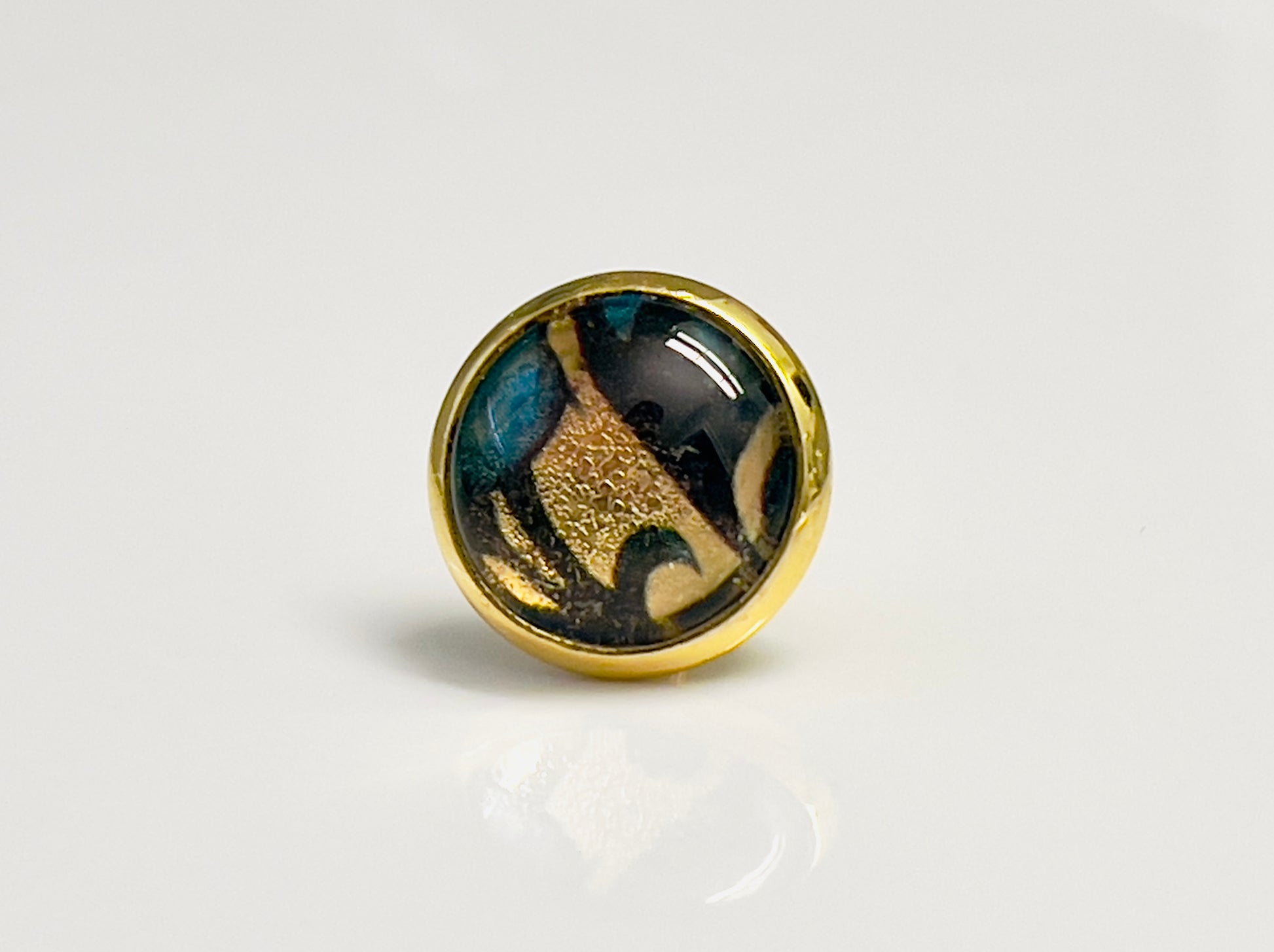 A tiny Graffiti Pop picture is created on a stainless steel earring surface, with a comic book grain texture. Topped with a magnifying clear dome, for a 3D dimensional look.